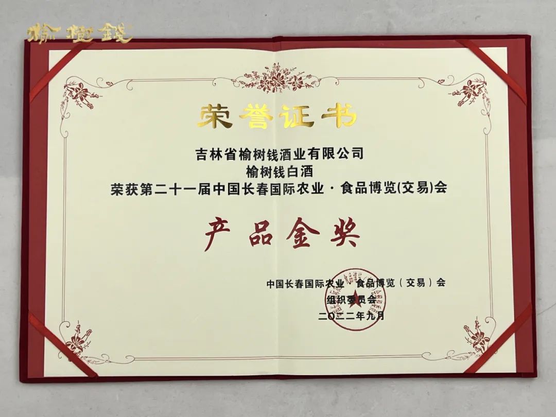 喜報(bào) | 榆樹錢酒業(yè)榮獲第二十一屆中國長春國際農(nóng)業(yè)·食品博覽(交易)會(huì)產(chǎn)品金獎(jiǎng)